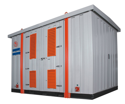 COMPACT TYPE SUB-STATION IS USED FOR FEEDING POWER BY ACQUIRING MINIMUM SPACE, PREFERABLY AT ROOF TOP OF THE BUILDING OR PORTABLE TYPE FOR CONSTRUCTION SITES. THEY ARE EASY TO INSTALL, USUALLY MOUNTED ON SKID FRAME OR CHANNELS, WITH LIFTING HOOKS OR PORTABLE TROLLEY AS PER CUSTOMERS DEMAND THE COMPACT TYPE SUBSTATION IS COMPARTMENTALIZED WITH SUITABLE MEDIUM VOLTAGE, LOW VOLTAGE SECTIONS & TRANSFORMER SECTION WITH SEPARATE DOORS FOR EACH COMPARTMENT. THE DOORS ARE SECURED WITH DOUBLE POINT GODREJ TYPE CLOSING DEVICE WITH FLUSH-MOUNTED HANDLES FOR PADLOCKING AND THE COMPLETE UNIT IS DESIGNED OUTDOOR/INDOOR TYPE AS PER CUSTOMERS SPECIFIC REQUIREMENTS.